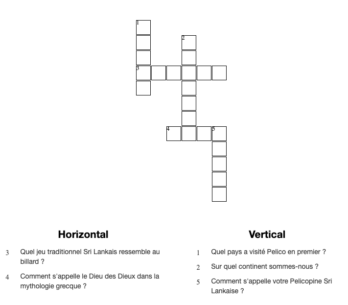 Pour commencer l’aventure, Pelico vous propose de compléter ce mots fléchés afin de trouver le premier indice !