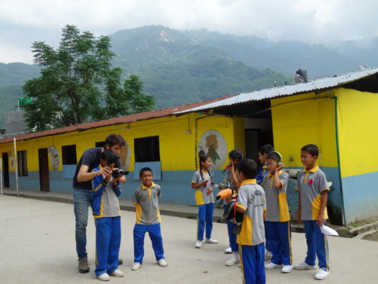 La ville de Besisahar se situe à l’ouest de Katmandou, à l’entrée de la chaine de montagnes des Annapurnas, qui comporte plusieurs sommets à plus de 7 000 mètres d’altitude (dont un à 8 091m). C’est une ville de passage pour les touristes qui viennent faire des trecks dans les montagnes. Mais pas de treck pour nous, nous avons plutôt rencontré de nouveaux pelicopains dans une des écoles de la ville.