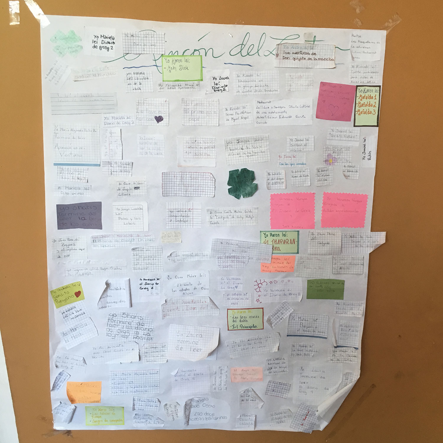 Ci-contre, voici tous les livres que chacun a lu cette année, dans nos coins des lecteurs (rincon del lector) !