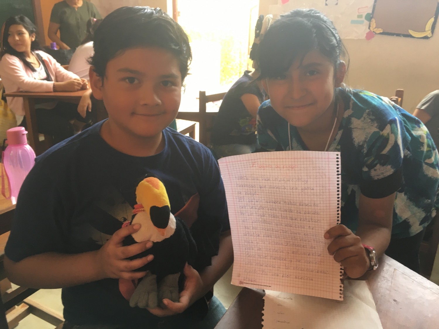 Habia una vez un pájaro muy hermoso que parecía una llama de fuego. El pájaro siempre había deseado ser una flor pero cuando se paraba en un lugar, todos los que estaban allí pensaban que esa cosa se iba a incendiar ; se paro en un árbol, se paro en un rio para tomar agua y lo mismo. Entonces se paro en un ceibo y estuvo feliz. Pero tuvo hambre y se comió una mariposa y las otras mariposas dijeron : es una flor acecina ataque. Pero una voz intervino : « Es el ceiba » gritaron. « Si, soy yo. »