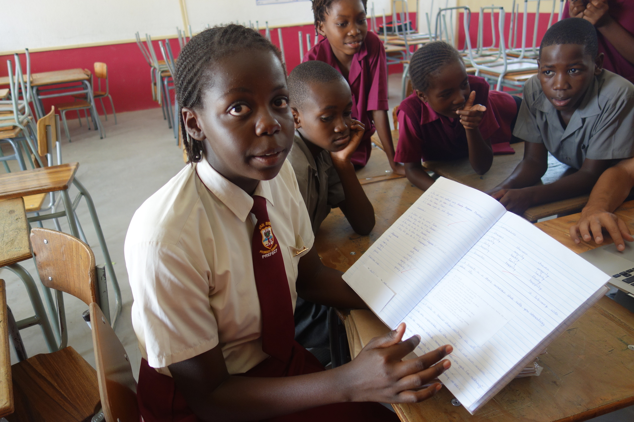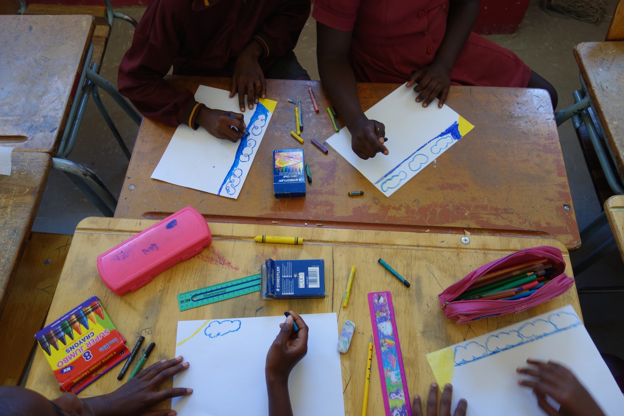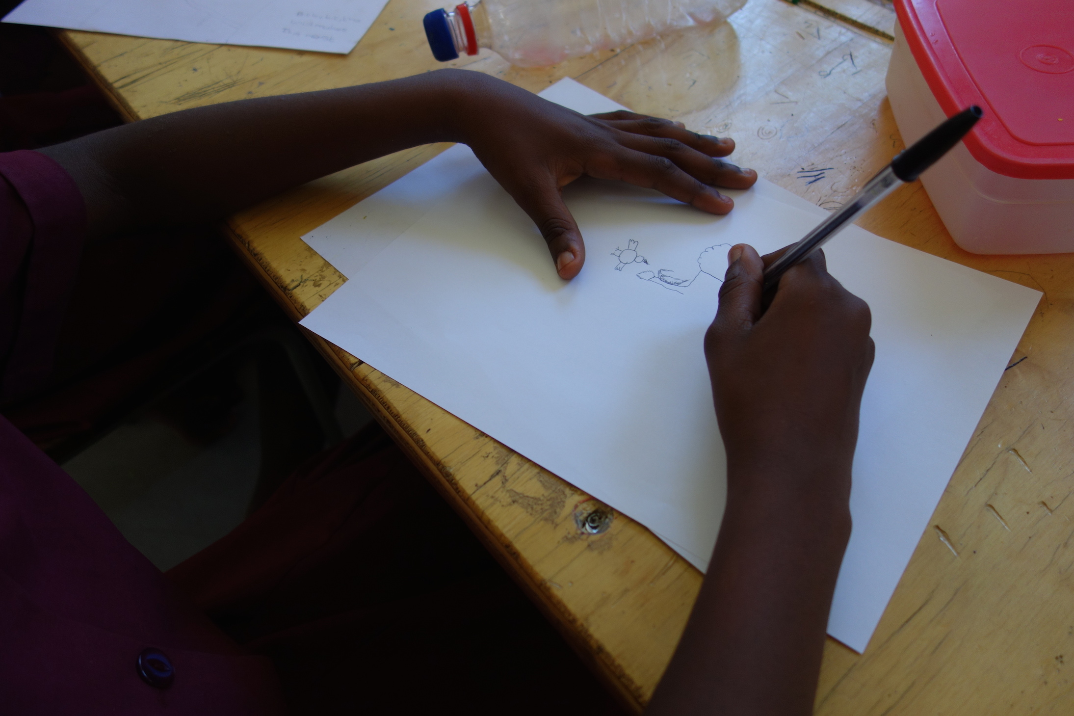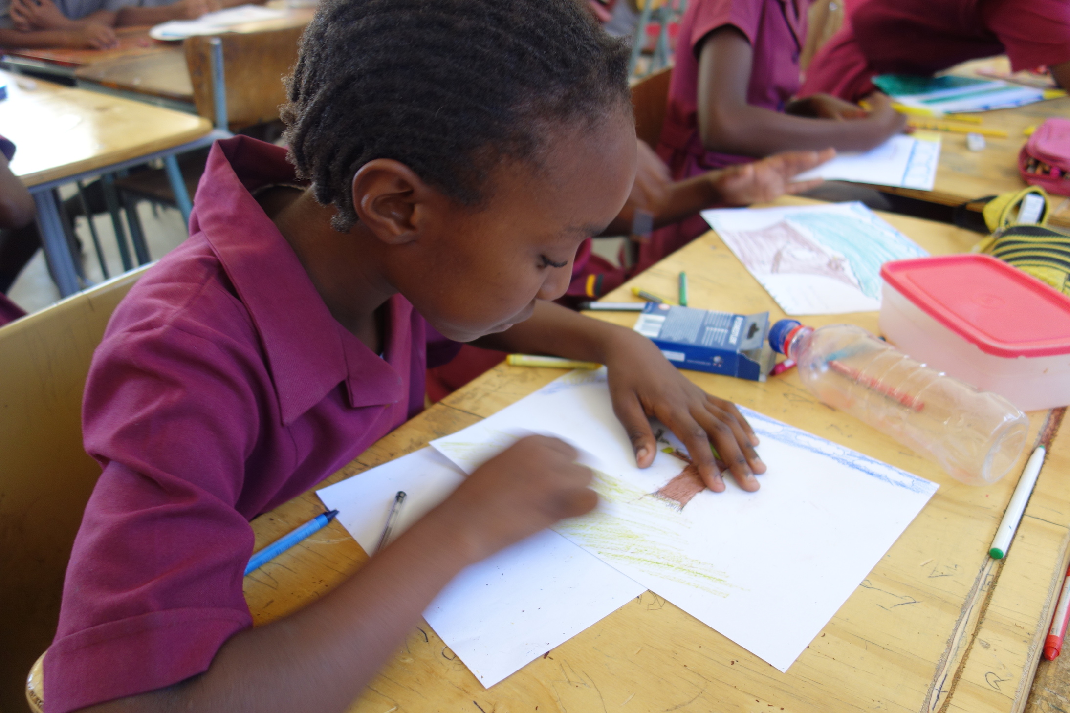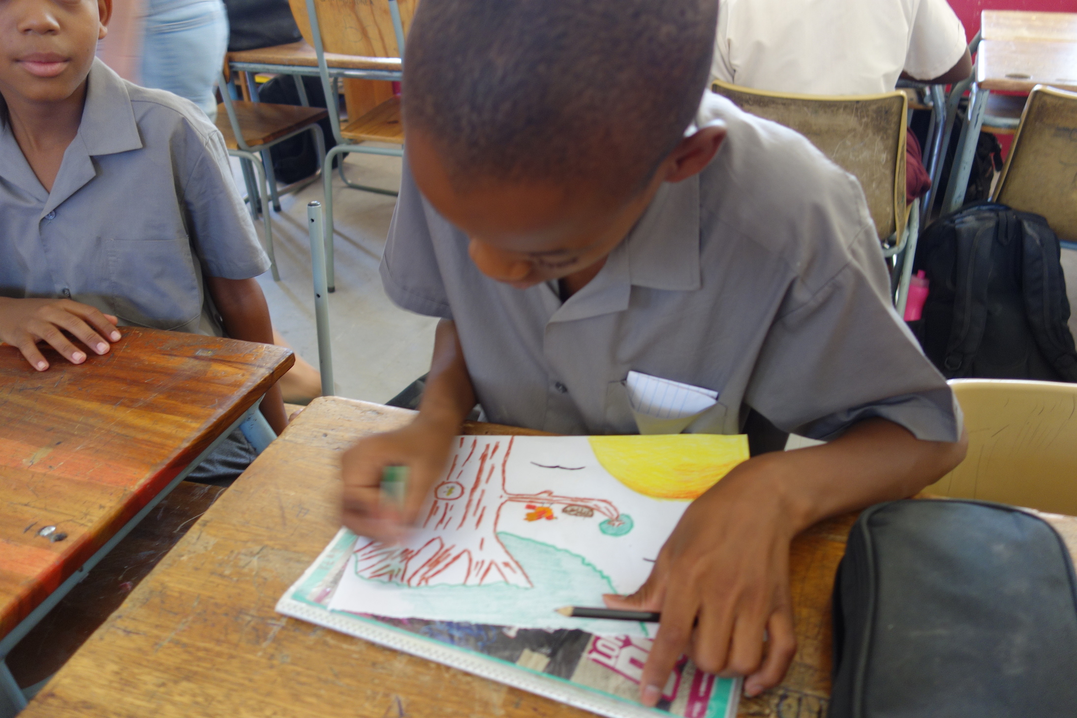 Les enfants Namibiens réagissent aux proverbes africains dessinés par une classe française