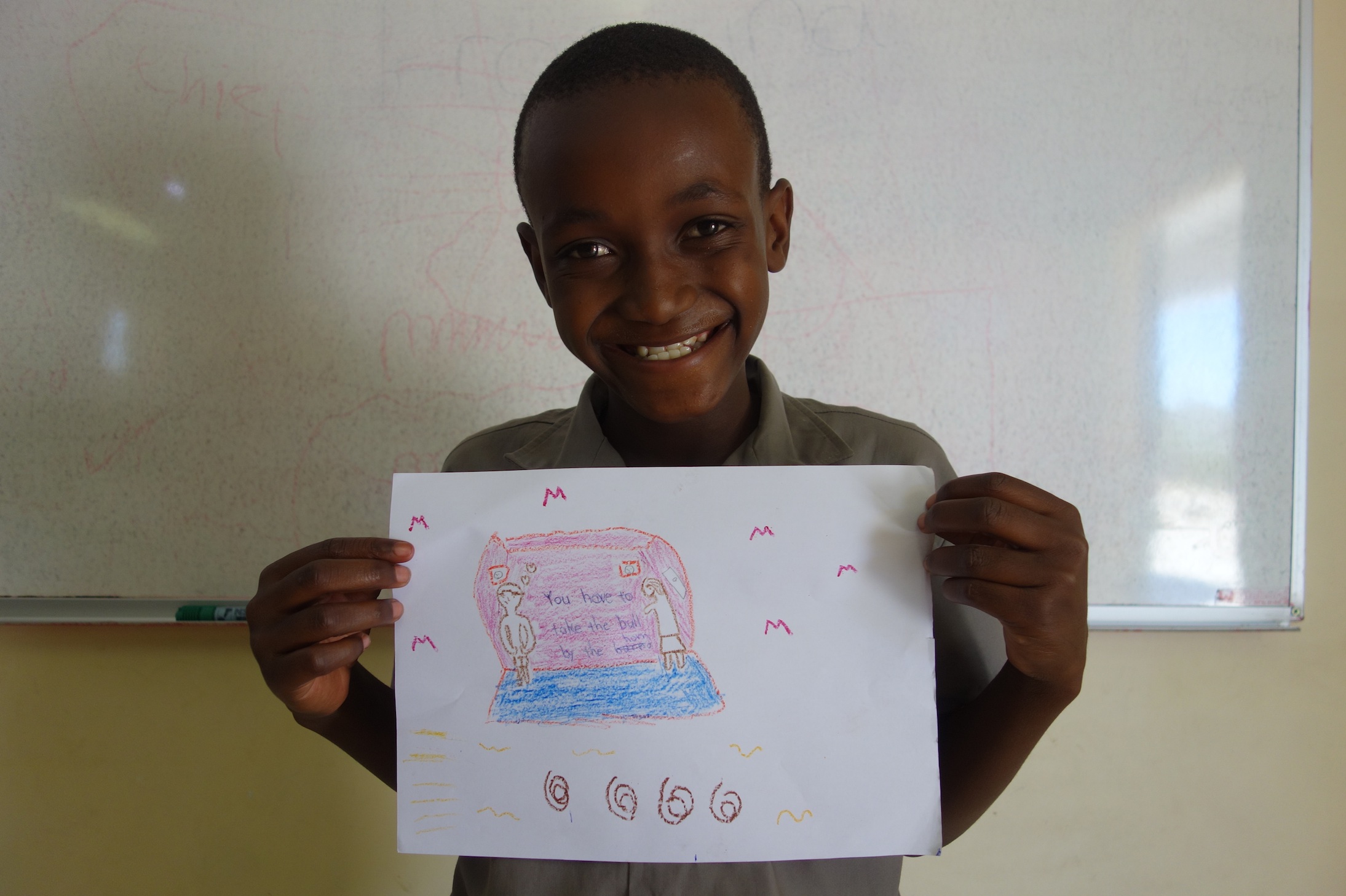 Les enfants Namibiens réagissent aux proverbes africains dessinés par une classe française