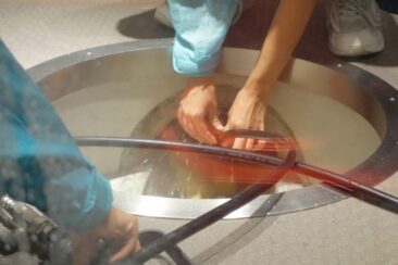 3. Dernière décantation : Après le repas, il y a plein de miettes dans l’eau 🙂 Donc on peut à nouveau procéder à une phase de décantation. On récupère l’eau de surface pour les derniers traitements et on envoie la boue présente au fond du bac dans une autre usine de traitement.