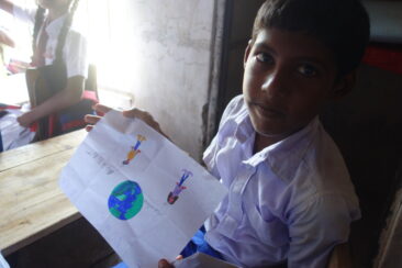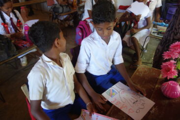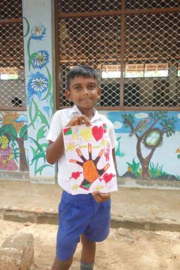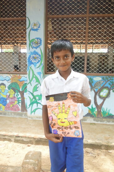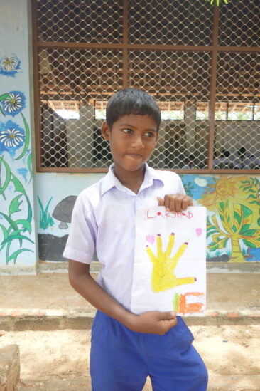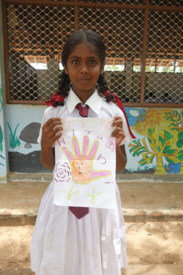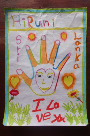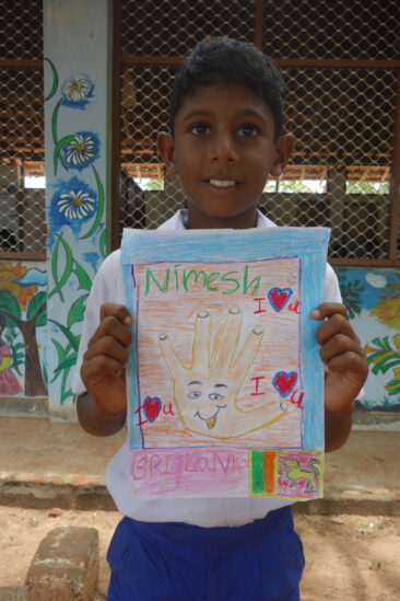 Les enfants sri lankais ont promis de dessiner leurs mains ! En attendant voilà quelques photos de ces enfants entrain de recevoir les dessins faits par les enfants namibiens !