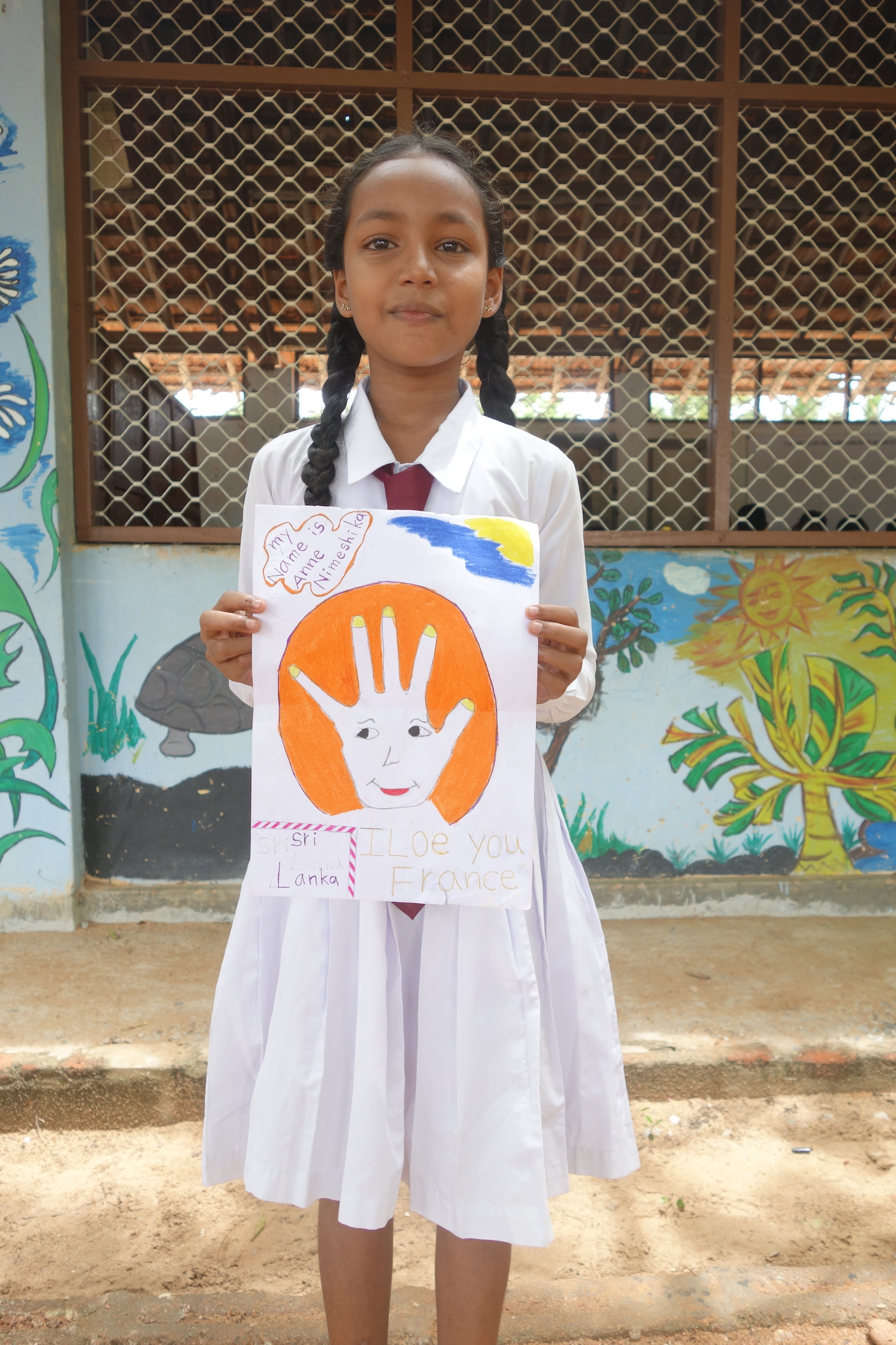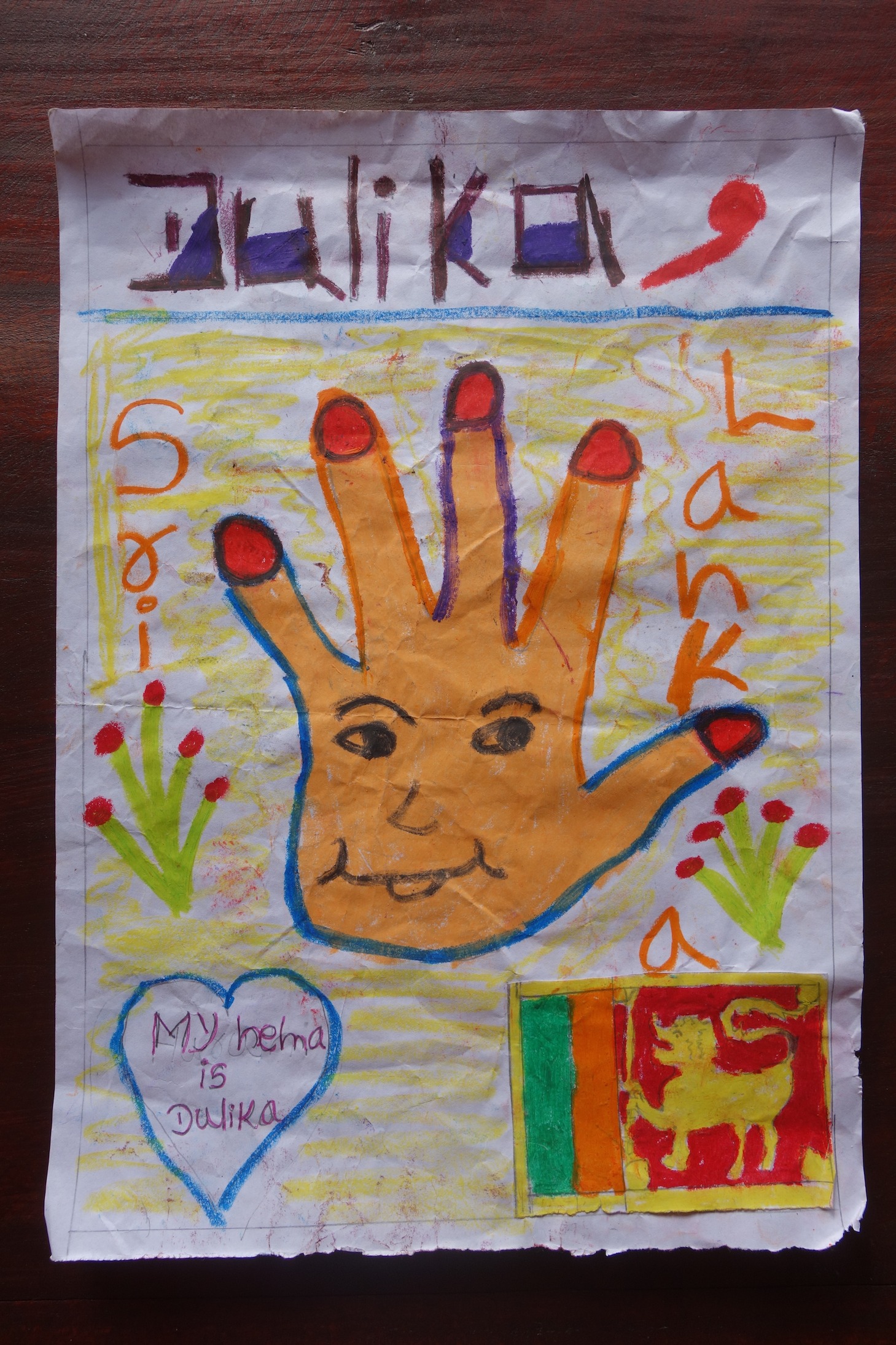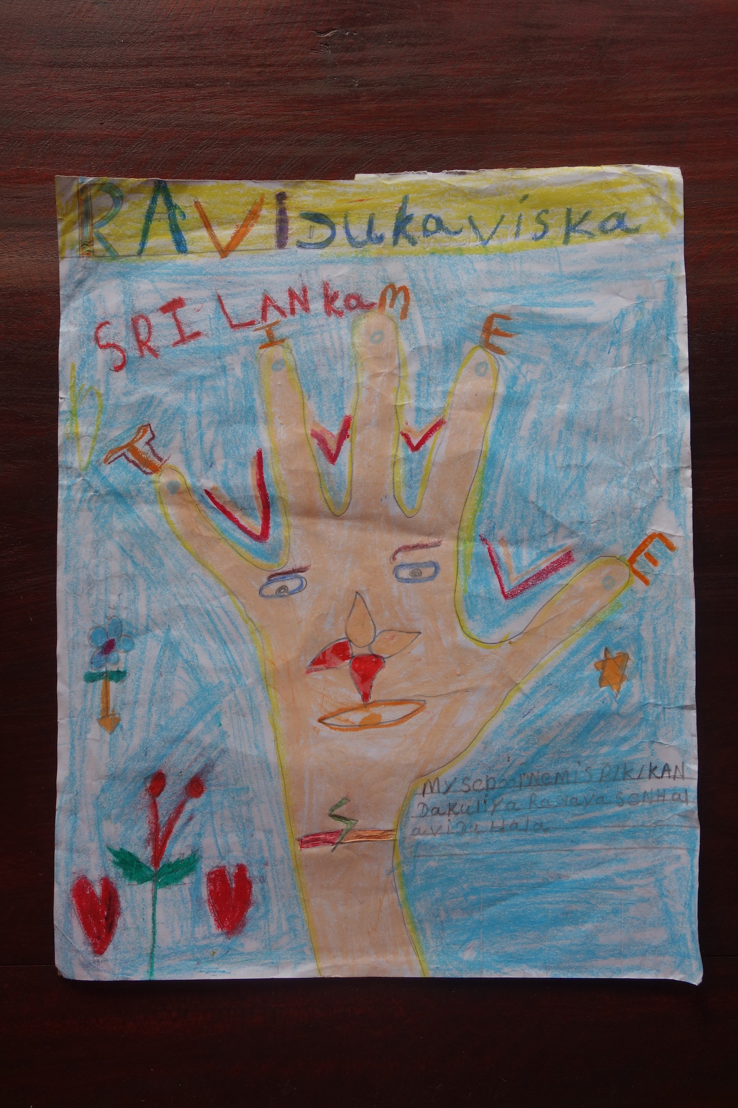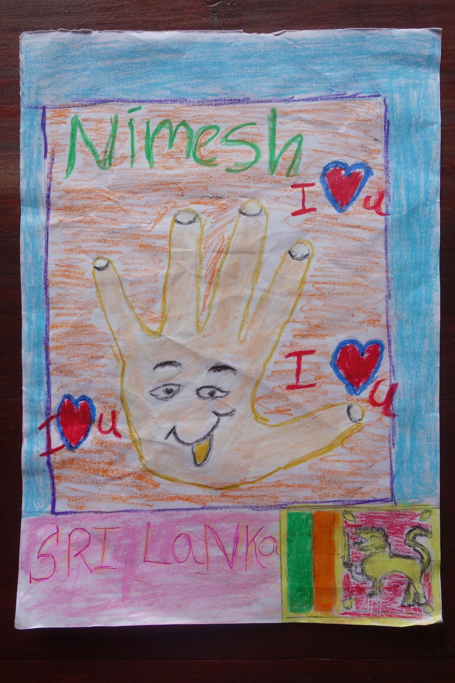 Les enfants sri lankais ont promis de dessiner leurs mains ! En attendant voilà quelques photos de ces enfants entrain de recevoir les dessins faits par les enfants namibiens !