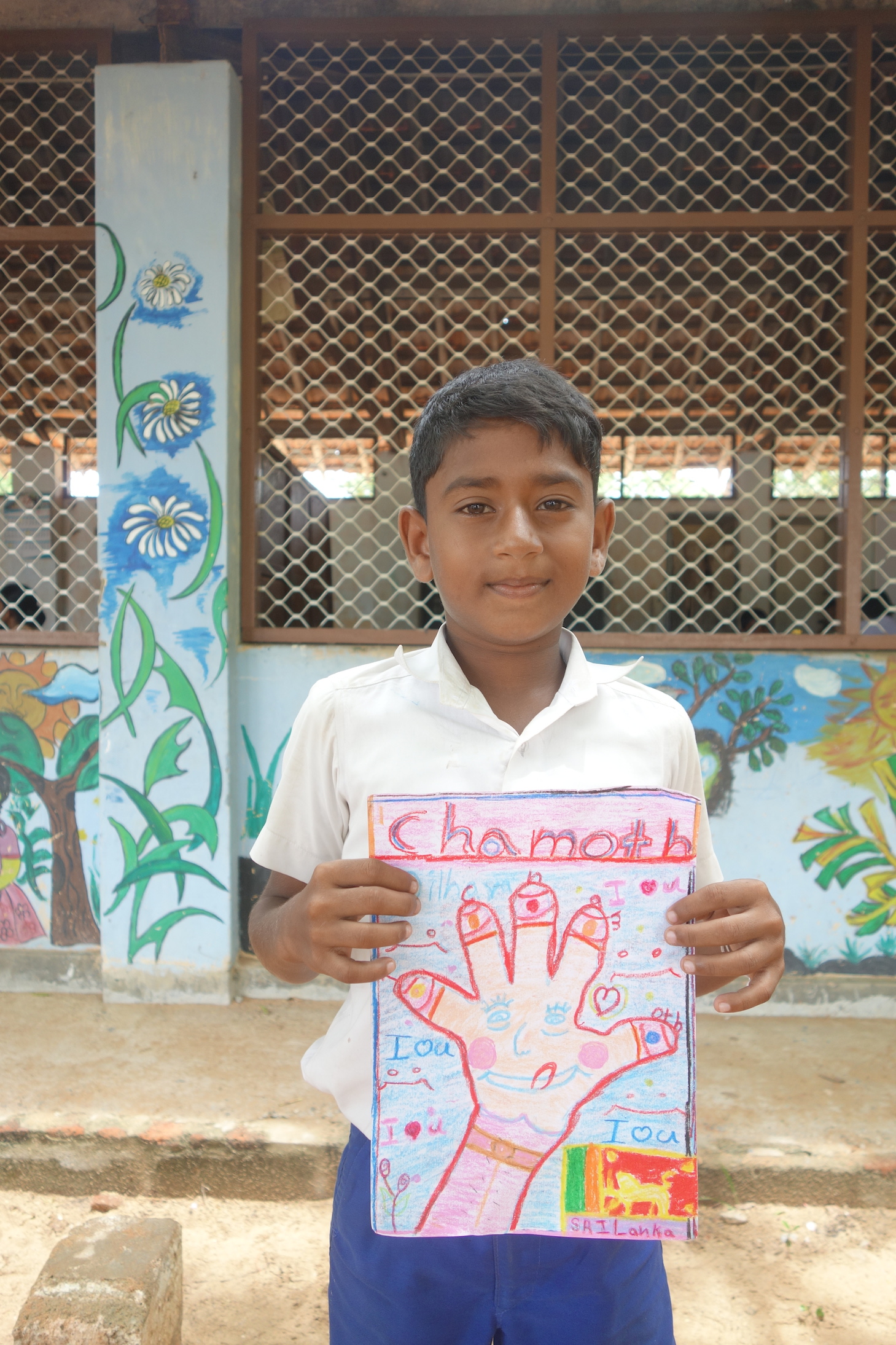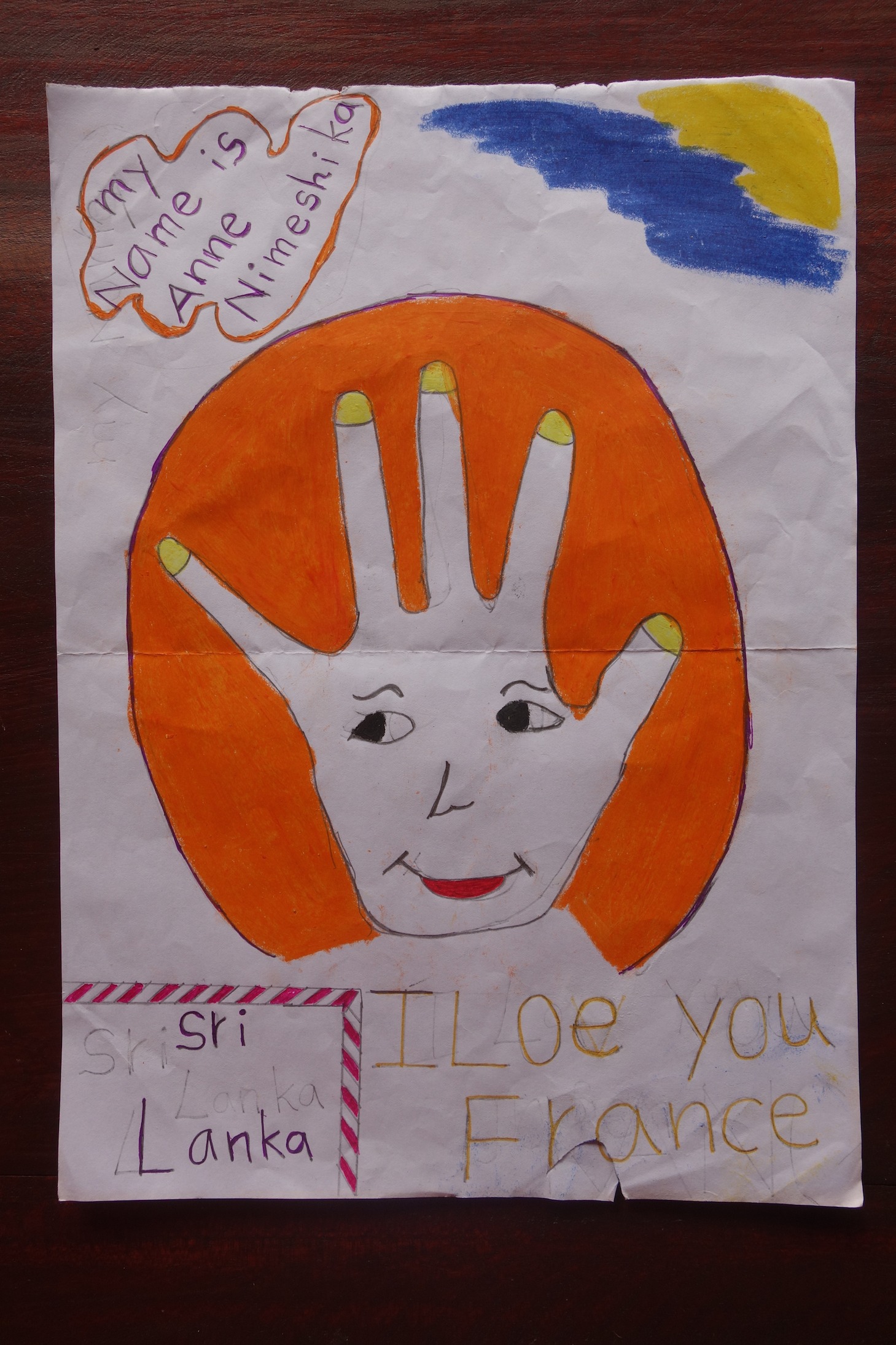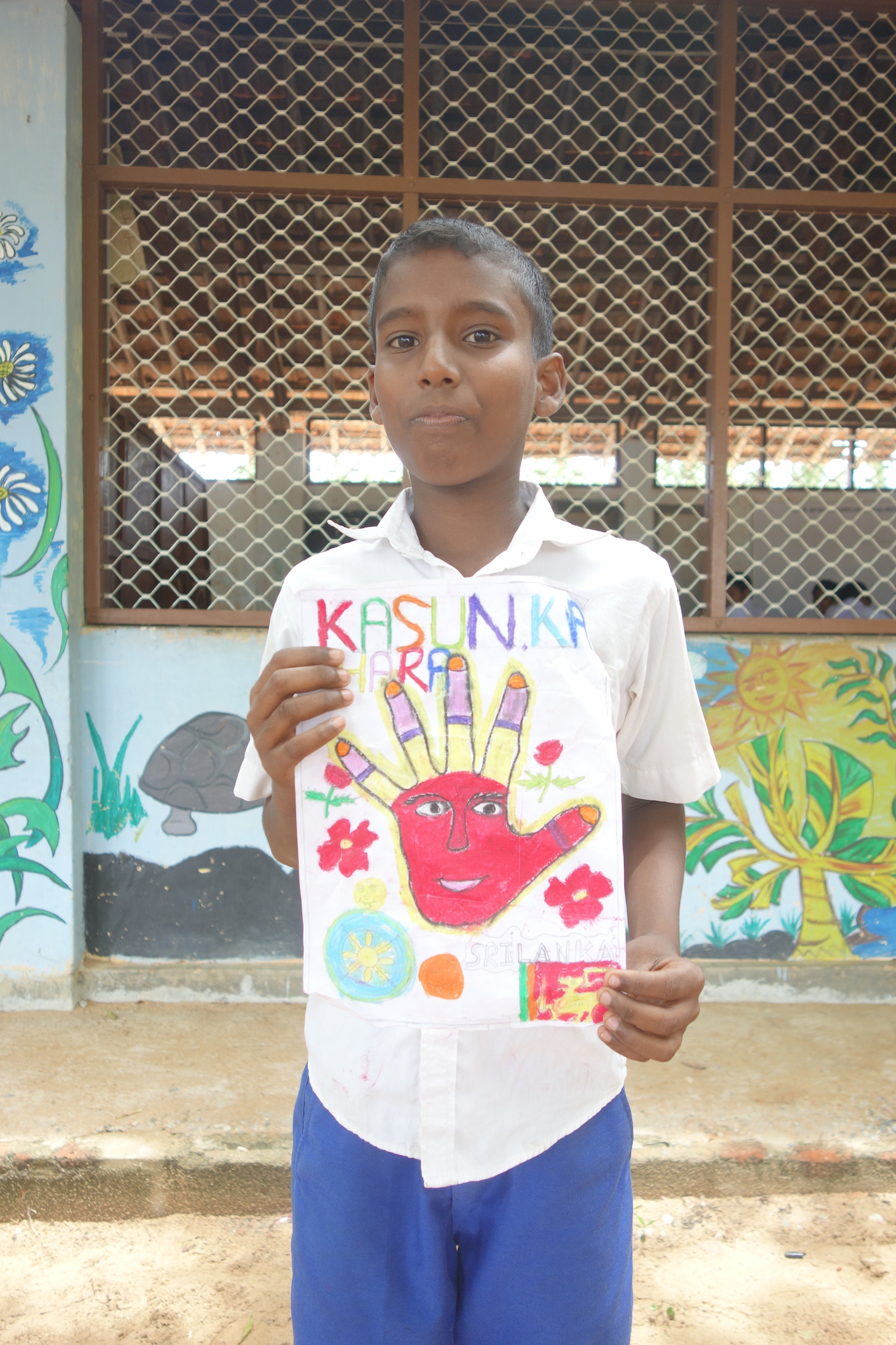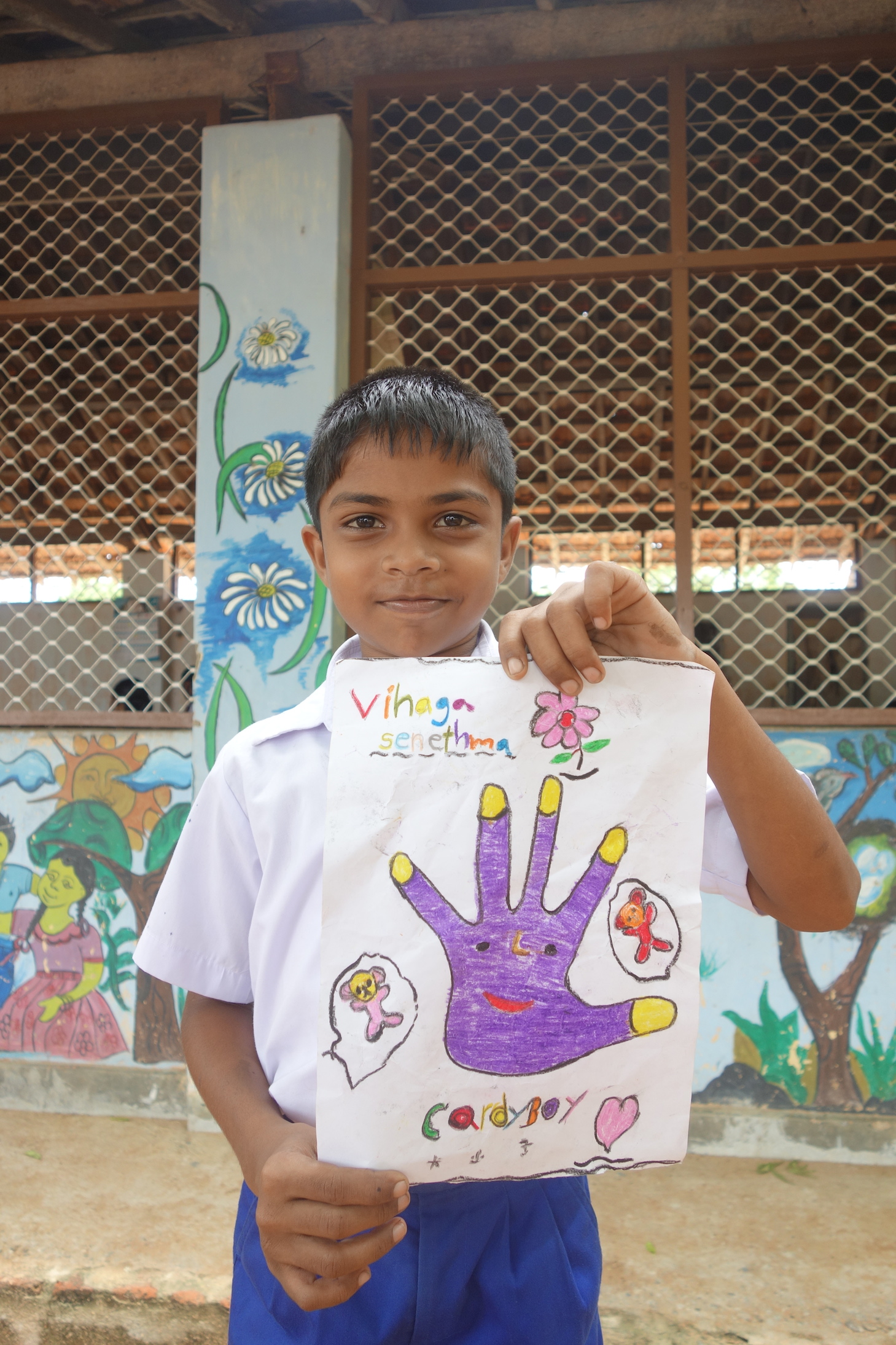 Les enfants sri lankais ont promis de dessiner leurs mains ! En attendant voilà quelques photos de ces enfants entrain de recevoir les dessins faits par les enfants namibiens !