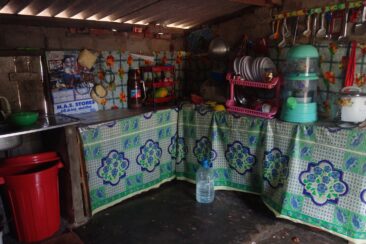 Pas de photo dans la chambre à coucher, navré ! Pelico ne se sentait pas à l’aise pour prendre la photo. Sachez simplement que toute la famille dort dans la même pièce (qui donne sur le séjour) ; les lits sont posés sur le sol, et protégés par une moustiquaire.