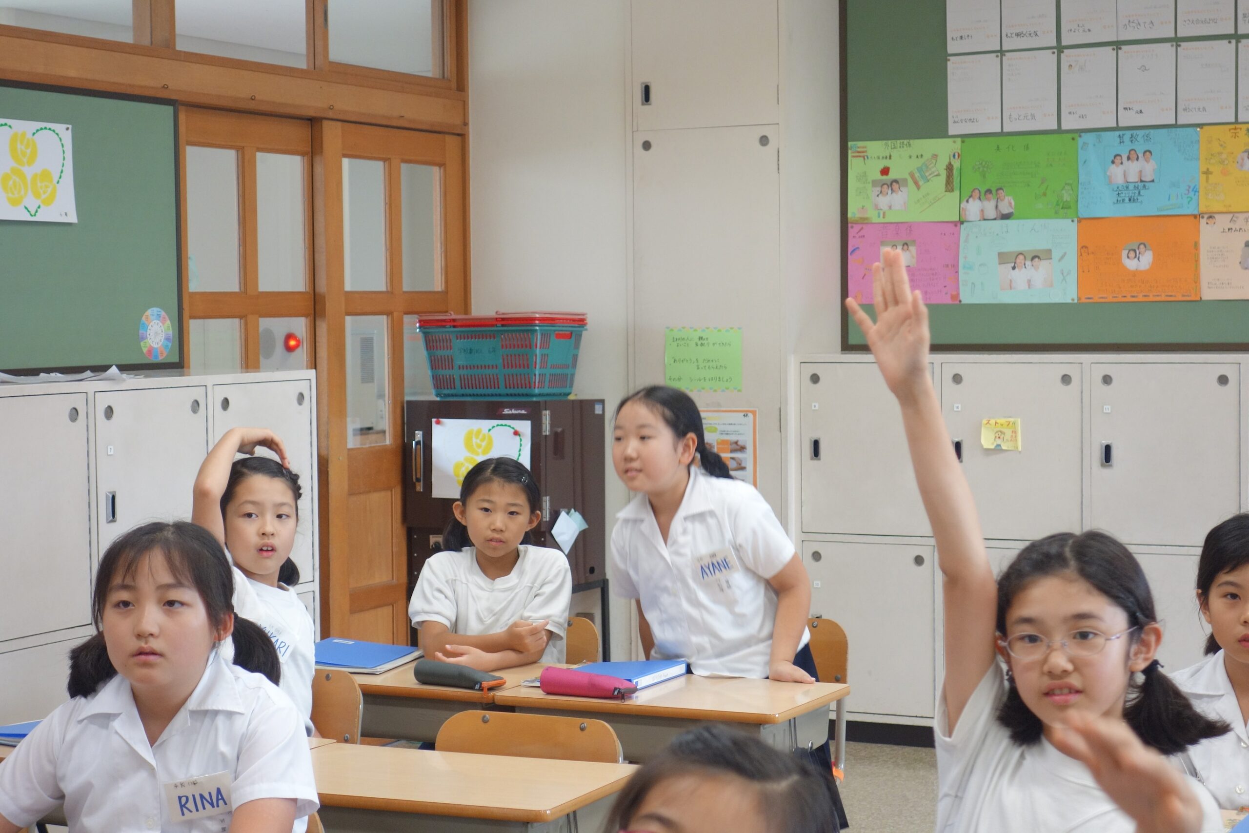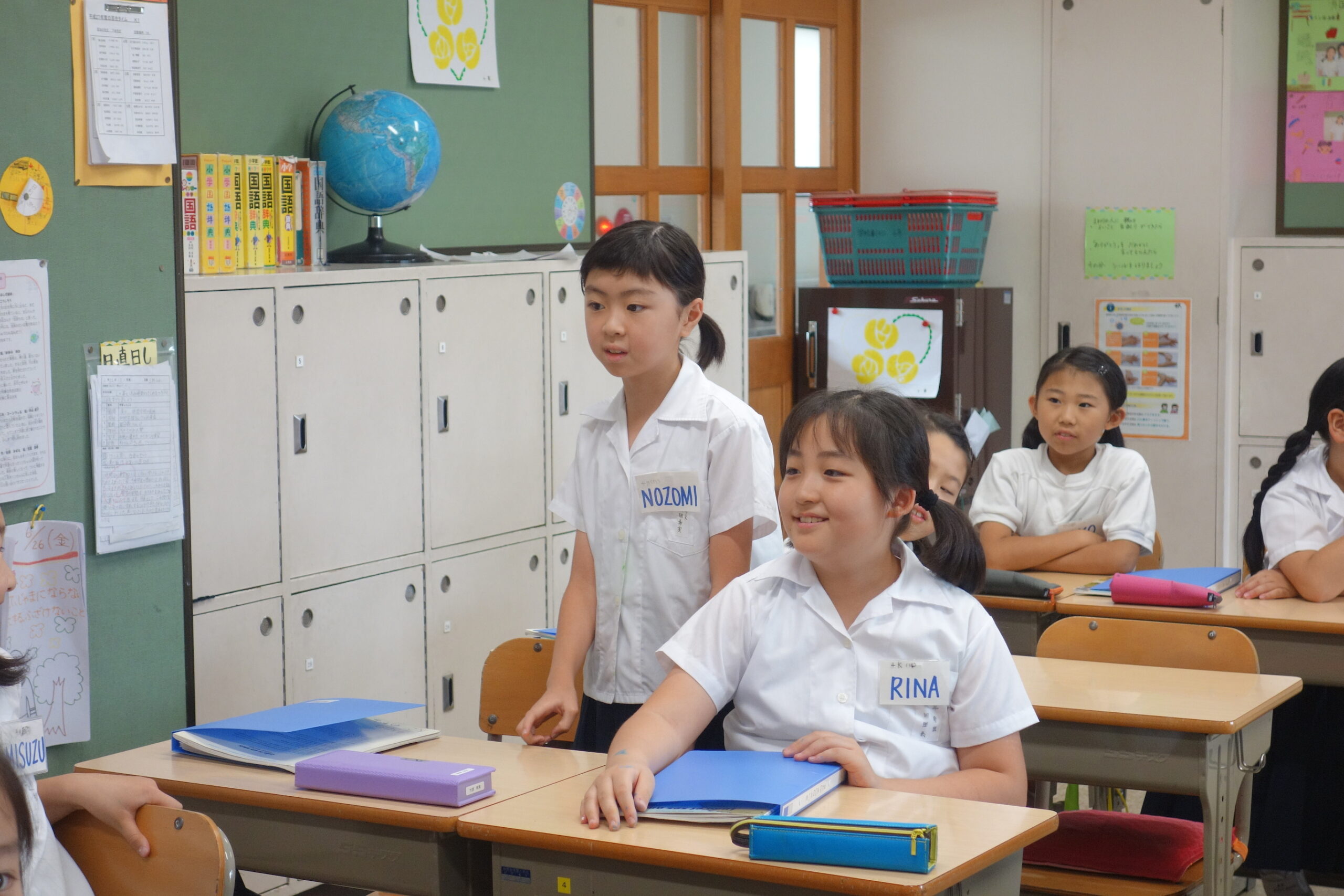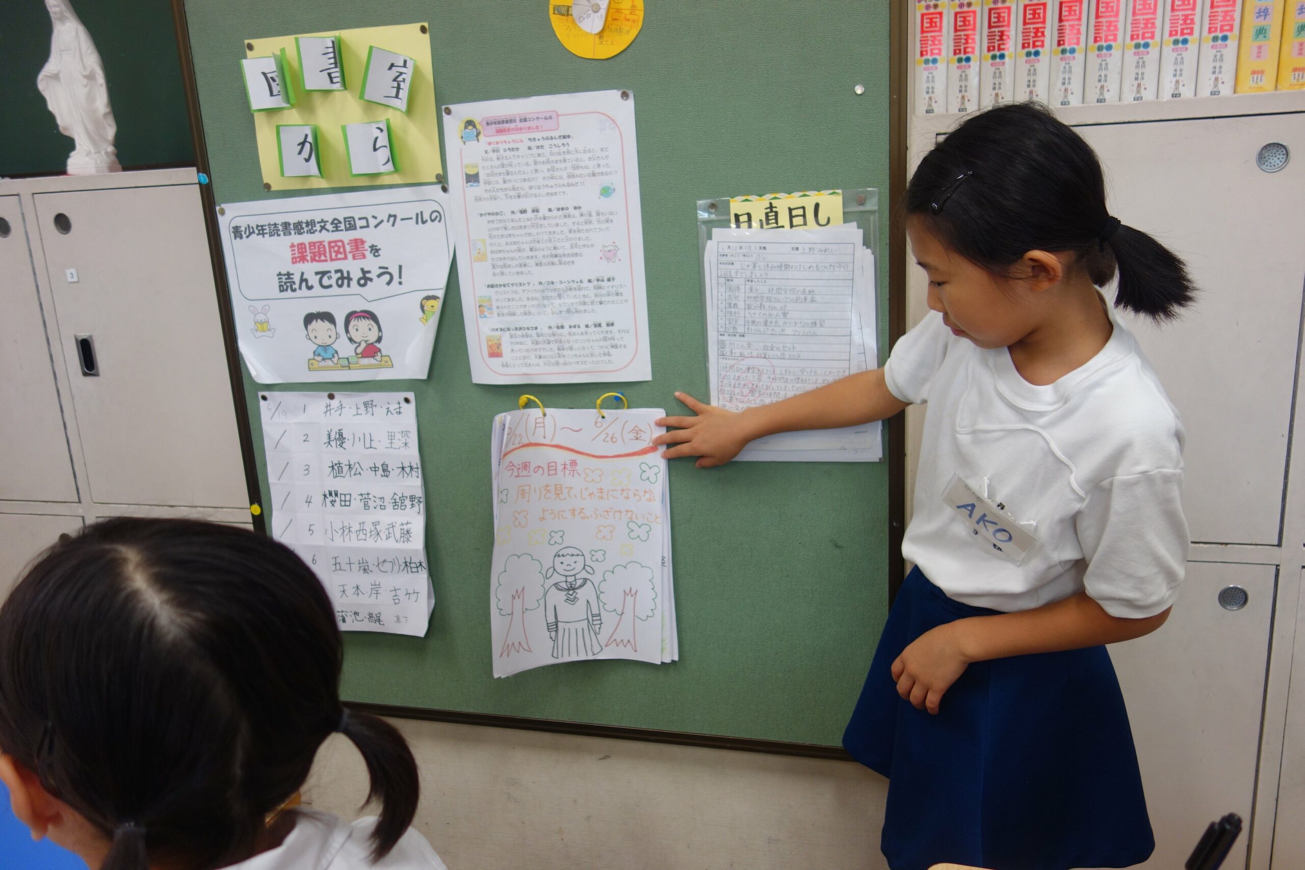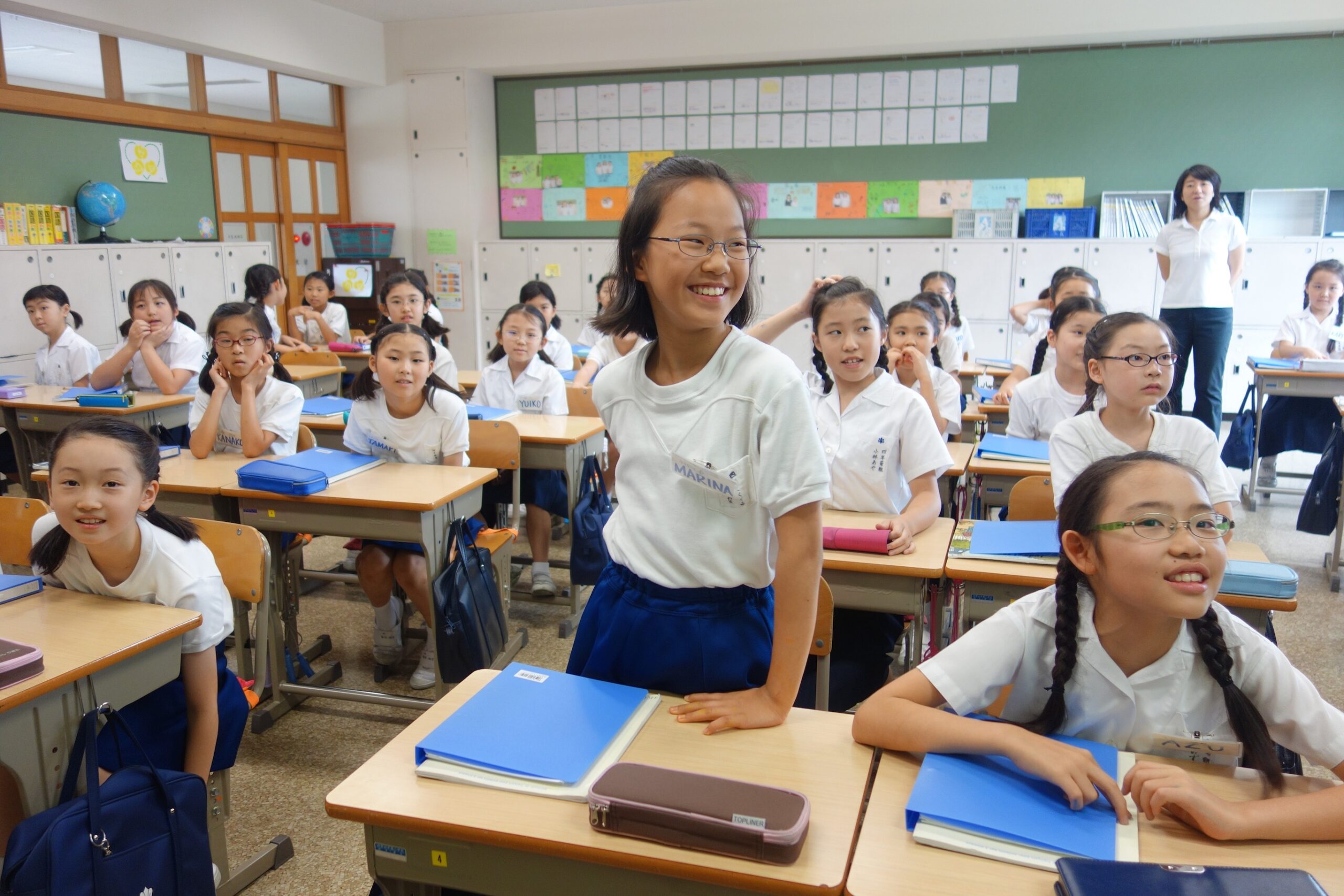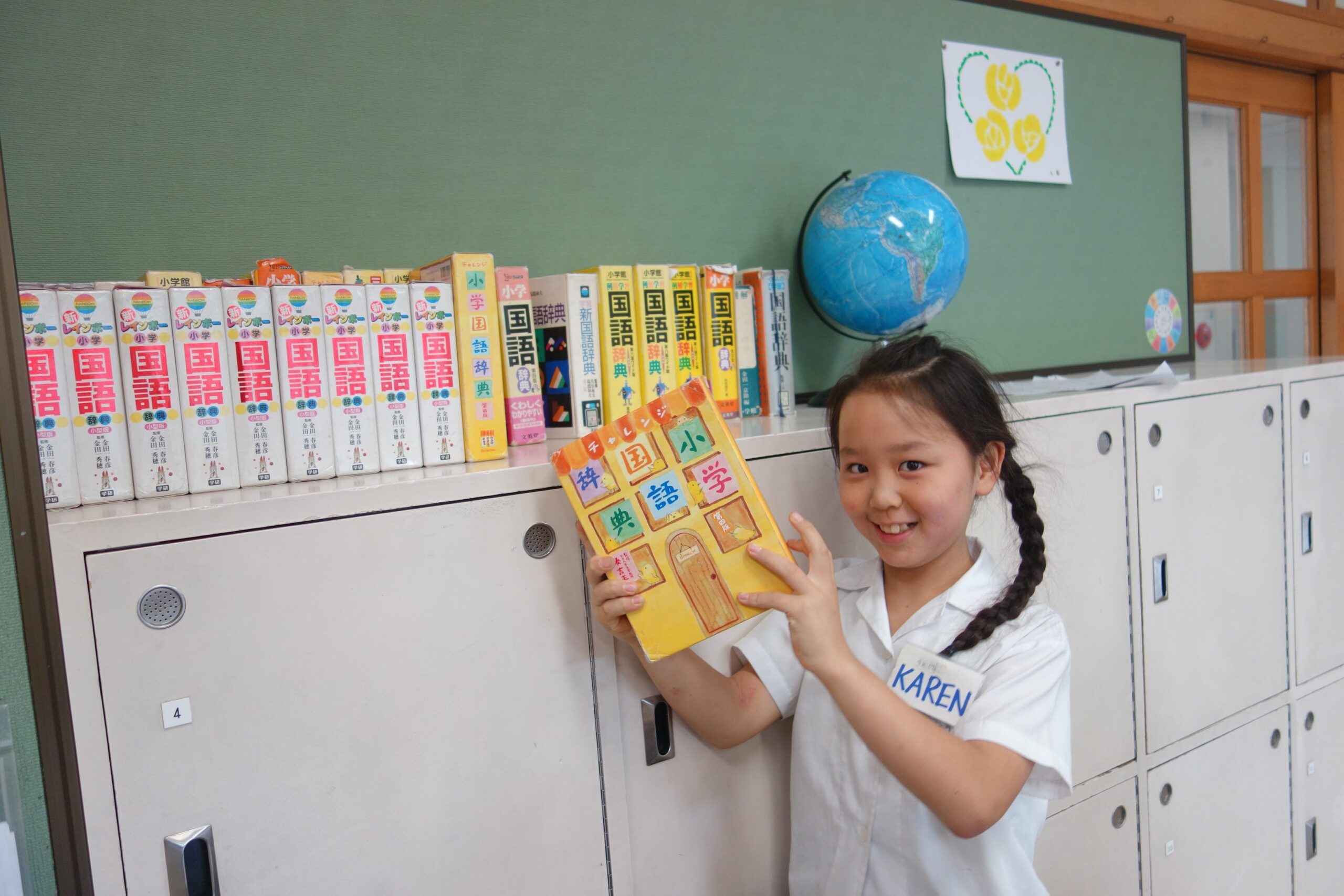 Lorsque nous arrivons à l’école, à partir de 7h30, nous avons jusqu’à 8h20 pour changer d’uniformes, de chaussures ; il nous reste un peu de temps pour jouer ou aller à la bibliothèque !