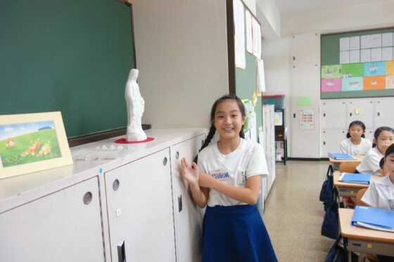 Dans la classe, nous sommes deux à être baptisées. Mais comme notre école est privée et catholique nous prions toutes ensemble !