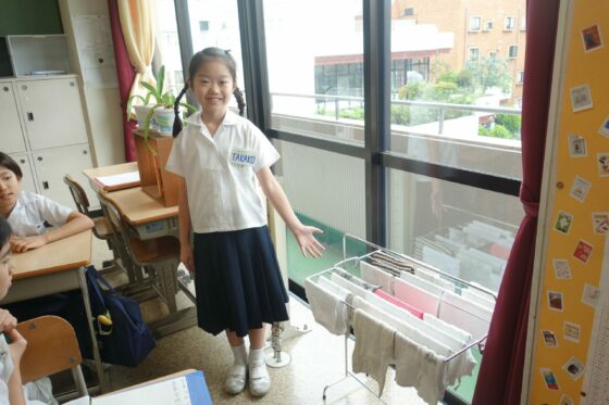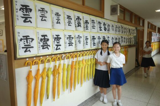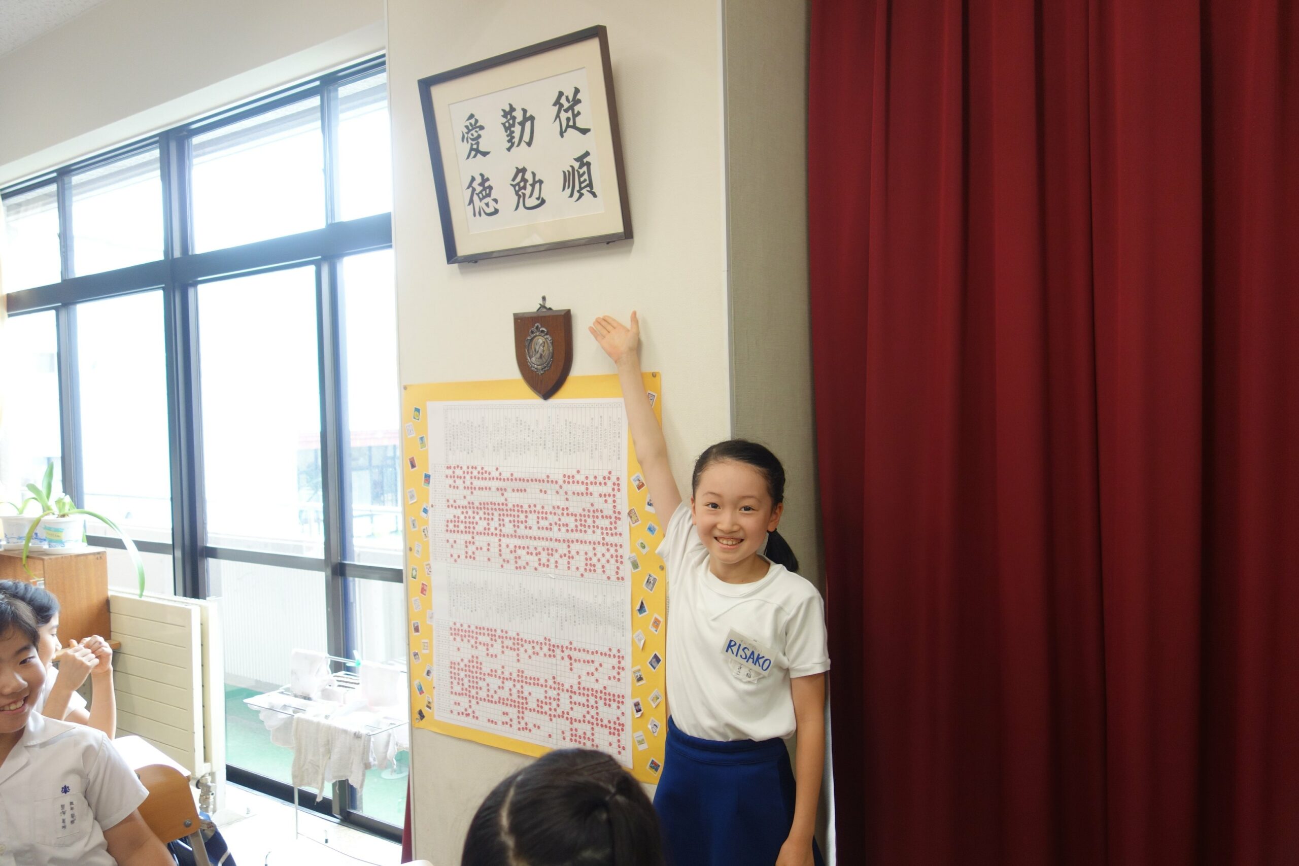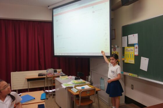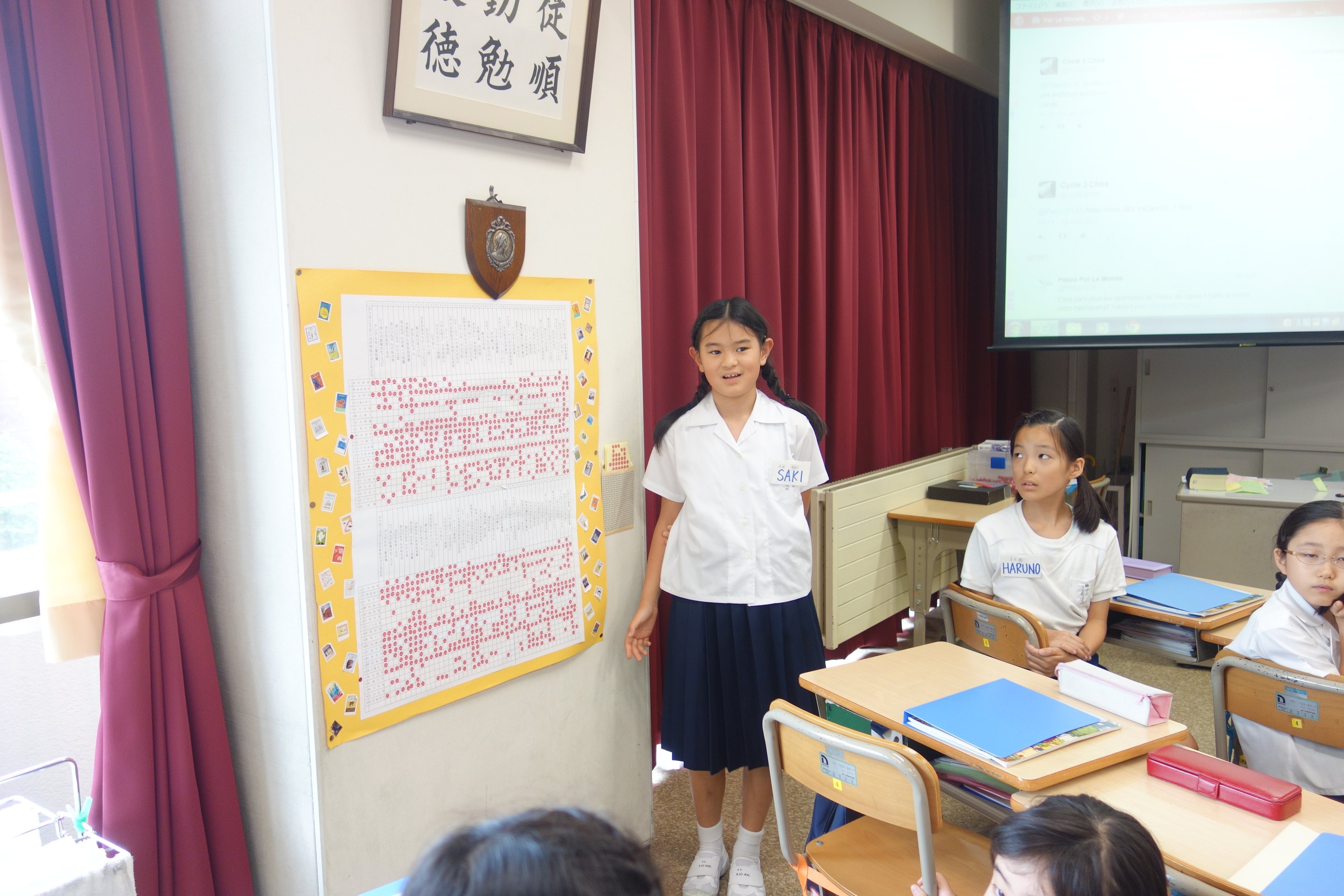 Nous avons chanté l’hymne de notre école, en japonais ancien ! Encore moins facile de comprendre les paroles pour Pelico !