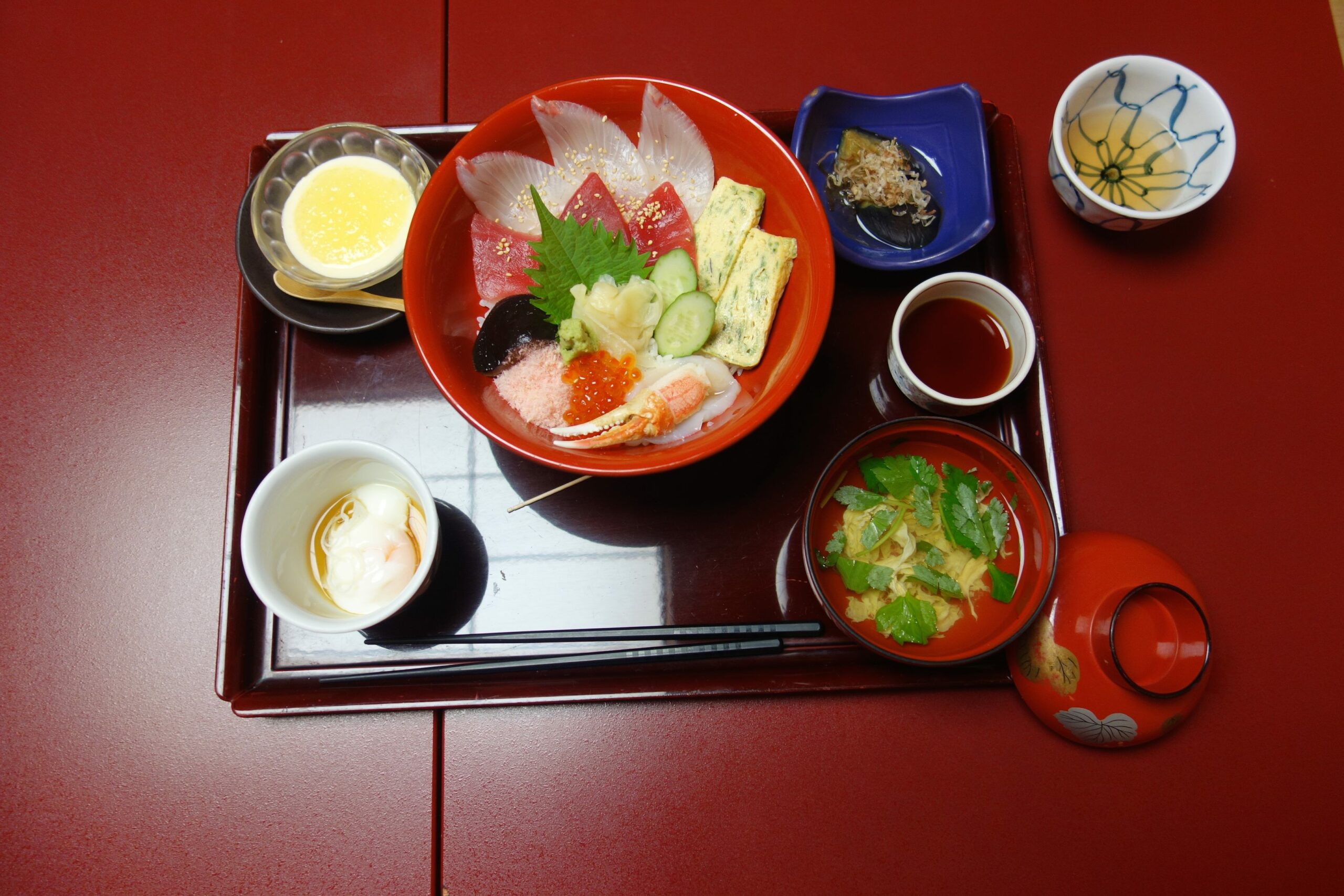 - des Oyakodon : un bol de riz avec un oeuf, recouvert de garnitures (légumes, poulet) ;