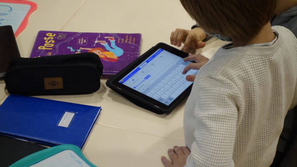 Dans la deuxième classe, chaque binôme avait accès à une tablette, nous avons donc laissé les élèves choisir un thème et écrire leur scénario directement sur Clap. Après une première exploration de l’outil en autonomie, nous avons réalisé un exemple ensemble en prenant Trompette comme personnage principal. Nous leur avons demandé de s’arrêter à l’écriture des séquences. Chaque binôme a ensuite présenté son histoire.