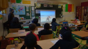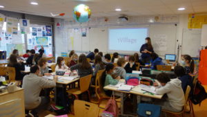 Afin de lancer le projet, Trompette, l’amie de Pélico, est allée rencontrer deux classes franciliennes qui participent cette année à 1Village. Une classe de CE2 et une classe de CE2-CM1.